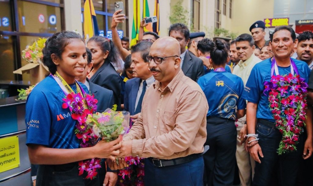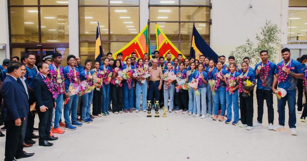 කටුනායක බණ්ඩාරනායක ජාත්යන්තර ගුවන් තොටුපළ වෙත අද උදෑසන ඔවුන් ලඟාවිය. එම ක්රීඩක ක්රීඩිකාවන් පිළිගැනීම සඳහා තරුණ කටයුතු සහ ක්රීඩා අමාත්ය සුනිල් කුමාර ගමගේ මහතා සහ ක්රීඩා අමාත්යාංශයේ නිලධාරීන් ගුවන් තොටුපළ වෙත පැමිණ සිටියහ.
