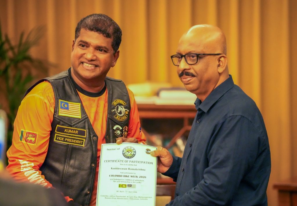 ශ්රී ලංකාවේ සංචාරක ව්යාපාරය නගාසිටුවීමේ අරමුණින් බසීවර්ඩ් ඉන්ටර්නැෂනල් ලංකා පුද්ගලික සමාගම (Buzzword International Lanka Pvt Ltd) විසින් සංවිධානය කරන ලද යතුරුපැදි සවාරිය සාර්ථකව අවසන් විය. ඒ අනුව යතුරුපැදි සවාරිය අවසානයේ දී මැලේසියාවේ ප්රමුඛතම ව්යාපාරිකයන්ගෙන් සැදුම්ලත් ‘ShadowFax’ යතුරුපැදි සමාජයේ සාමාජිකයින් අද (16දා) තරුණ කටයුතු හා ක්රීඩා අමාත්ය සුනිල් කුමාර ගමගේ මහතා හමුවිය.