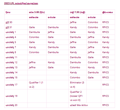 පළමු වටයේ තරග 4ක් පල්ලෙකැලේ ජාත්යන්තර ක්රිකට් ක්රීඩාංගණයේ දී පැවැත්වීමට නියමිත අතර ඉතිරි සියලු තරග කොළඹ ආර්. ප්රේමදාස ජාත්යන්තර ක්රිකට් ක්රීඩාංගණයේ දී පැවැත්වීමට නියමිතයි. කණ්ඩායම් පහක් මේ සදහා තරග කිරීමට නියමිත ය. පසුගිය වර ශූරතාව දිනාගත්තේ ජැෆ්නා කින්ග්ස් කණ්ඩායමයි. මෙම තරඟාවලිය විශේෂත්වය වන්නේ මෙවර ක්රීඩක වෙන්දේසියක් පැවැත්වීමයි.